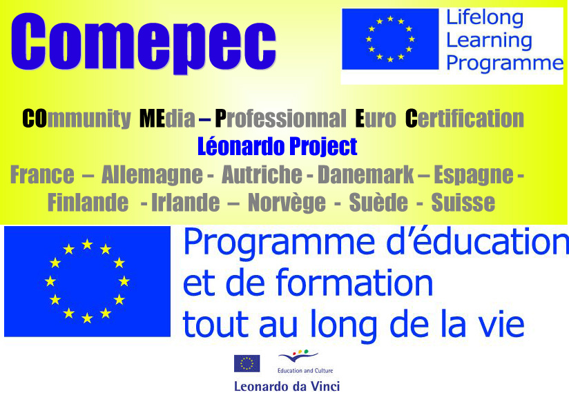 Ce partenariat européen, nommé COMEPEC (Community Media Professionnal Euro Certification), est inscrit dans un dispositif de "formation tout au long de la vie" dédié à la formation professionnelle des adultes, dénommé Leonardo da Vinci. Son domaine d'action concerne les métiers des médias associatifs et communautaires en Europe : reconnaissance des compétences, référentiel de formation et de certification, accès à la mobilité géographique et à la diversification multimédia.